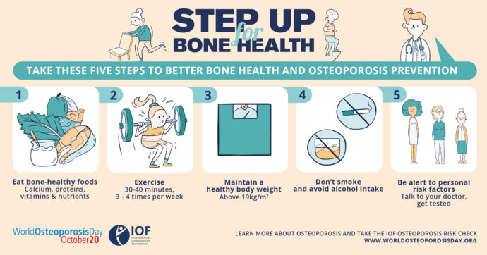 Igal aastal tähistatakse 20. oktoobril ülemaailmset osteoporoosipäeva, mille eesmärgiks on tõsta teadlikkust osteoporoosi ennetamisest, diagnoosimisest ja ravist.